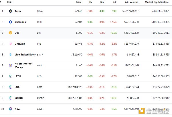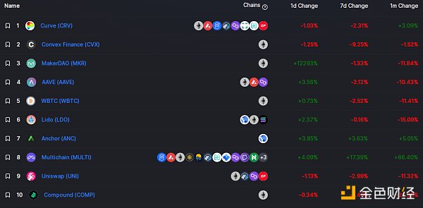 DeFi项目锁定资产前十排名及锁仓量 数据来源:defillama