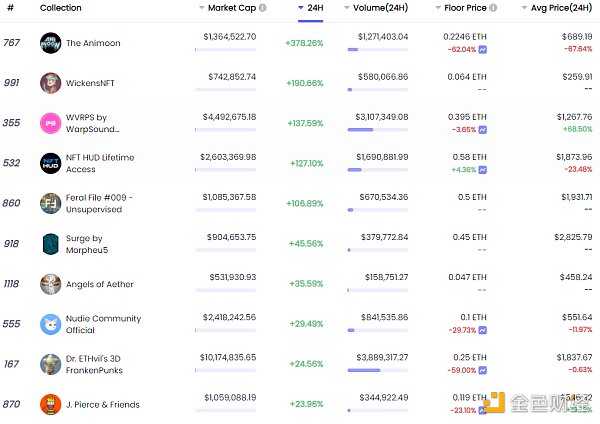 24小时内销售价格前十的NFT 数据来源:NFTGO