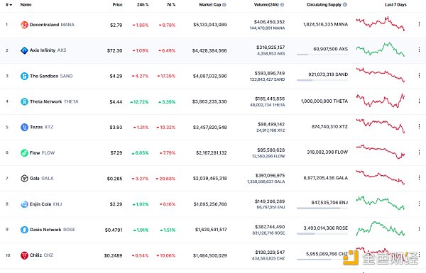 NFT总市值、市值排名前十项目 数据来源:coinmarketcap