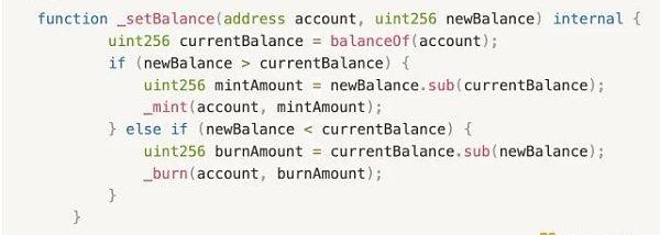 而无法使用的函数大概有20个,而清除管理员权限最重要的是清除掉Mint出新的token的方法,整个3000行代码里,仅有_setBalance是调度Mint权限的,当然虽然他没有出现onlyOwner符号修饰他,是因为他是个internal的方法,这种外部无法调用,仅能被合约内已经定义好的方法调用