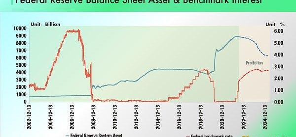 2020年新冠疫情爆发后,全球央行为稳定经济启动货币扩张,美国基础货币同比增速超过300%,外溢流动性迅速推高金融资产价格,美联储资产负债表规模从疫情前的4.16万亿美元,上升至8.92万亿美元,增幅超过一倍。2021年全球经济逐渐恢复常态,然而货币扩张导致通货膨胀大幅上行,美国CPI上涨至40年新高,鲍威尔从2021年11月开始决定收紧购债规模,并从2022年6月份开始缩表。按照美联储5月4日公布的缩表路径测算,到2025年3季度,美联储资产负债表规模降至6万亿美元以下。流动性边际收紧给高估值资产带来了明显的压力。