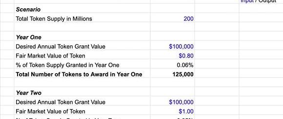 你可以使用这个计算公式来决定授予多少代币。该计算公式还能让你知道每年授予的代币占你的代币池的百分比是多少。