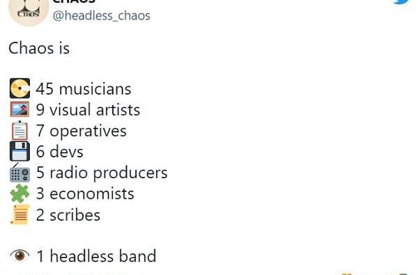 Chaos作为Songcamp的第三个活动,比之前两个活动的范围更大,于2022年3月启动。它是一个八周的音乐创作实验,80位参与者来到SongcampDiscord中进行音乐创作,组建一个headlessband。Chaos中包含7个团队:音乐、视觉、运营、开发、电台博客、经济模型设计以及跨职能团队。