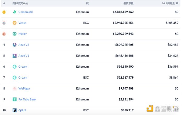 DeFi项目锁定资产前十排名及锁仓量,数据来源:Debank
