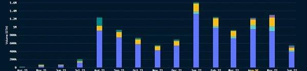 谈到NFT市场,我们观察到市场上存在类似的避险情绪。自1月份的峰值以来,月度NFT交易量和交易数量均有所下降。