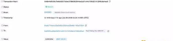 2018年6月29日,谢国梁将10,500ETH转移到Binance帐号。Binance