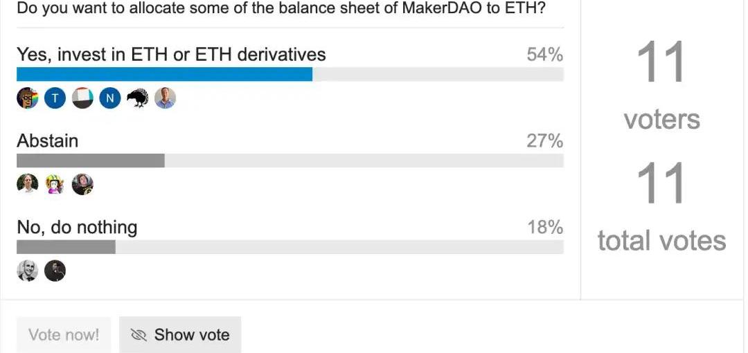的权重被纳入,以决定结果。下面是MakerDAOs投票页面的截图来作为一个例子: