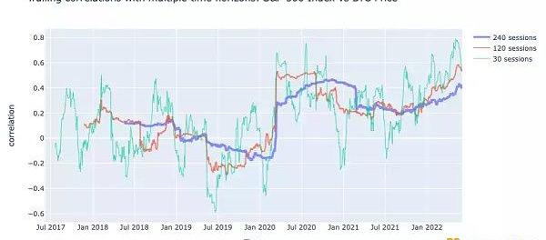 S&P500指数与比特币价格之间的多时间期限追踪相关性