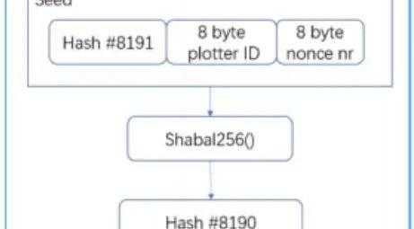 作为nonce中的最后一个哈希:#8191,把哈希#8191附加到起始种子,作为下一轮Shabal256计算的种子。