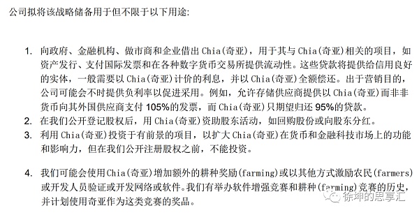 Chia对于作为战略储备的XCH代币的用途进行了说明: