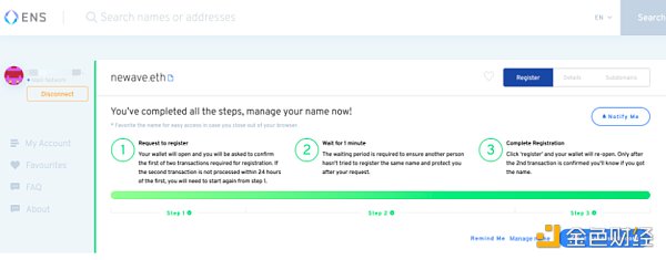域名要求至少3个字符,小编亲测5个字符以上,大约一年只需要0.002 eth,折合5美金
