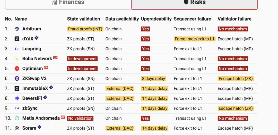 关于这方面的信息,可以看https://l2beat.com/?view=risk披露的信息,他们在做这方面的审查工作。