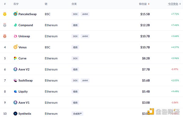 DeFi项目锁定资产前十排名及锁仓量,数据来源:Debank