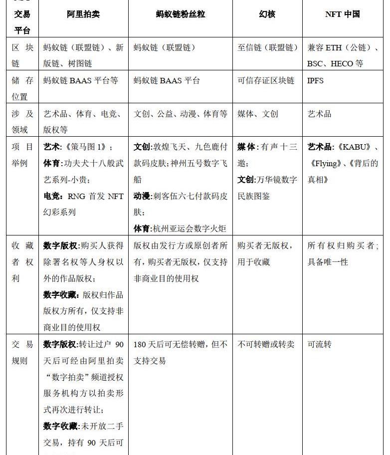 表:国内主流NFT发行平台比较
