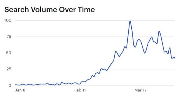 谷歌上“NFT”一词的搜索量在3月初达到了历史最高水平。搜索量是相对于0 ~ 100的,100为指定时间段内的最大值。NFT在谷歌的搜索量在3月12日达到了100。NFT本质上是区块链上作为流动知识产权铸造的数据。这些数据可以是艺术、游戏虚拟商品、声誉分数、访问私有网络等。