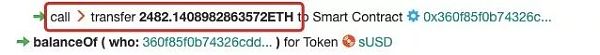 这么多转账交易中,攻击者一共购买了 20 次 sUSD,最终获利离场,那么攻击者具体是怎么操作的呢?我们使用区块浏览器 bloxy.info 来做进一步分析。