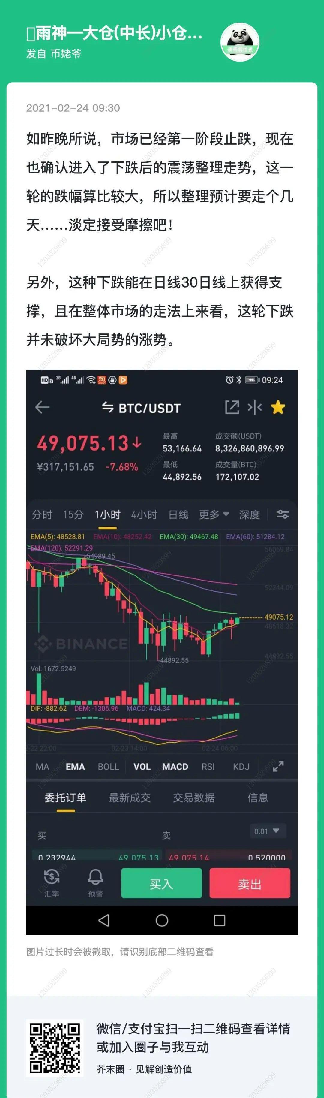 万刀暴跌之后,大饼价格又出现了多次下探,在小时级别上成功守住了45000点的底线,并出现了超10个点的反弹,目前重回50000点上方。同样的,以太坊从最高2000点最低跌至1350点,又反弹回1600点上方,让新韭菜真正见识到了数字资产的高波动性。前几天我刚说,大饼站上5万大关后,杠杆常规的5倍杠杆计算,再出现大规模的爆仓,意味着大饼的波动要超过一万美元,这一切来得有点快。目前大家最关心趋势性问题,这一点我比较认可方舟资本CEOWood对这次暴跌的看法:本次比特币下跌属于健康回调。这一波浩浩荡荡的牛市,大饼拉高过程鲜有大级别的回调,上一波周线级别的回调还是在1月初,大饼从4万跌破3万,30%的跌幅同样对合约市场造成巨大冲击。这一次暴跌,结合下跌的幅度以及合约市场爆仓量,去杠杆的目的足够明显,且这一次还没有触及到MA30日均线。宏观层面,昨晚币圈朋友都在关注的美联储主席鲍威尔出席参议院听证会,也给我们传来好消息。鲍威尔重申将保持利率接近零,直到充分就业和通货膨胀上升到2%,表示不会轻易收紧货币政策。现在大家都明白,这一轮以美股为首的资产飞涨,是美联储放水的结果,只要维持宽松货币政策,资产的价格定会继续起飞。而对于币圈来说,美股的稳定是一个重要的参考,宏观层面不倒,币圈就无需担心外围风险。圈内的话,Bitfinex、Tether与纽约州总检察长办公室长达两年的诉讼案件也达成了和解,Bitfinex和Tether不承认有任何不当行为,并同意支付1850万美元作为和解的一部分。1850万美元对泰达来说不算大事,关键是可以换得USDT很长时间的稳定,结果来看对币圈自然是好事。这次是典型的花钱息事宁人的又一事件,币圈还无法根本摆脱这个困境,说到这里,又更加看好DeFi了。