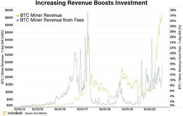 从投资角度来看,由于总费用和币价的上涨,挖矿收入在?2021 年 3 月创下历史新高。更多的外部行业投资会导致比特币挖矿各个方面的改进。其次,矿工拥有充足的现金储备用于提高矿工效率、扩大足迹或扩大清洁能源使用能力。