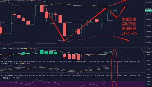 现在来看看一小时图。目前布林带呈现张口状态运行,晚间整盘局势被多头掌控,目前币价也在1250附近运行,处于中轨上方运行。在来看附图MACD快慢线形成金叉向上运行,绿色动能持续放量。KDJ三线处于向上发散运行,CCI线目前还在常态去向上运行往超买区前进,综合估计,宗盛个人认为,以太晚间还有回调可能性。目前晚间操作尽量一回调为主,