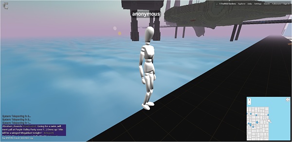 虽然身边只有两三个人,但能在这个冷冰冰的、充满离奇景观的、一切被明码标价的虚拟空间里看到真实的用户还是非常开心的。网络一线牵,相逢都是缘。我选定了离屏幕很近的一个位置,打开聊天框,选择跳舞模式。