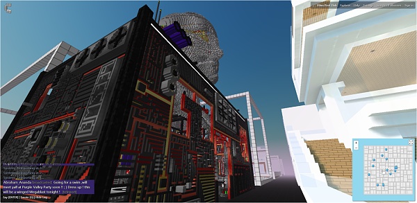 其实这并无大碍,只要移动至岸边,小人就会自动上岸,直接点击地图也能传送至任何位置。不像其他游戏世界里的玩家需要顾虑血量,蓝条,属性,伤害等参数,Cryptovoxels 里的人可以随意移动,无条件进出任何建筑,与世界中的任何人自由社交,没有出生或死亡。