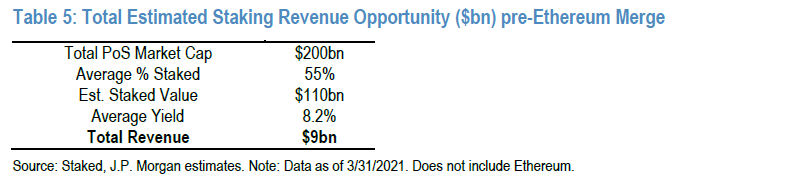 近期有两则消息是大家需要关注的,一个是摩根大通发布的Staking报告,另一个是有银行已开始在提供Staking服务。