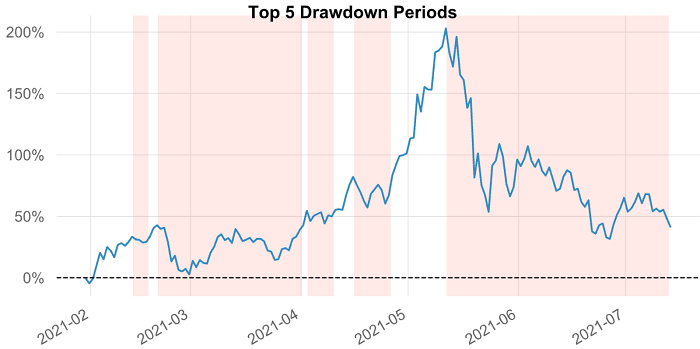 从历史上看,波动性增长和减弱都是相对的,一段时间市场走势波动幅度过大,随之而来的将会是波动下降。在下面这张图表中,我们可以注意到市场日均收入在 5 月份出现高度波之后,6 月至 7 月波动开始逐渐减弱。