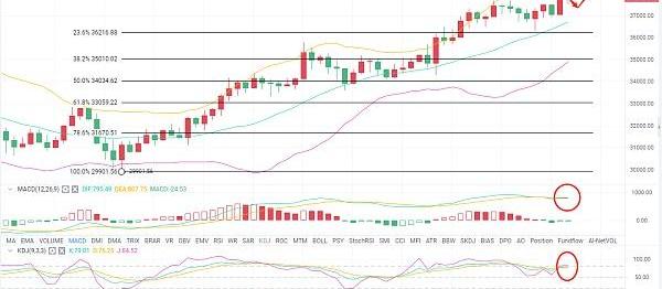 37850-37800附近低位多单进场,目标点位38040-38230,破位看38500,止损点位37500