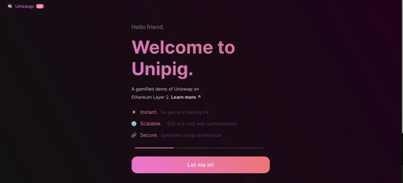 大约两年前,在2019年的DEVCON V上, Optimism与Uniswap合作建立了Unipig Exchange,这是Optimistic Rollup的第一个演示。