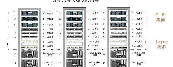 以Filecoin挖矿为例,假设Filecoin挖矿有六大流程,单机结构组成的集群是指这六大流程都放在一台矿机上,这一台台矿机同时也组成了一个集群,但是每一台矿机都是独立的个体,其中的系统交互性比较低。
