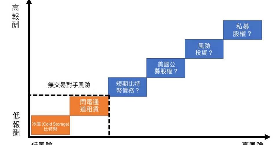这个比特币风险谱的第二个区块是关于比特币闪电网络。它是用来做小额比特币付款的。因未透过第三方,所以付款快速且手续费低廉。