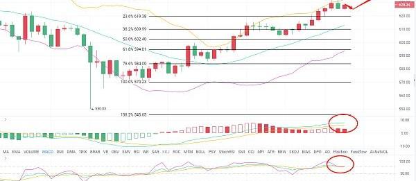 628-625附近低位多单进场,目标点位632-636,破位看640,止损621