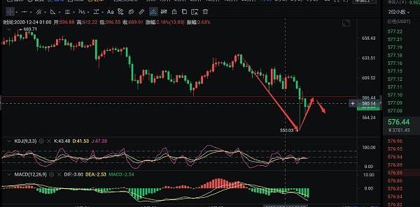早盘以太深度回踩,币价一度触及550一线,主力砸盘非常坚决,从4小时线来看,以太早间跌破了前期的横盘区间,短期虽然有大级别的反抽,但是4小时仍然以实体阴线收线,空头情绪仍然在蔓延,目前币价跌破前期的横盘区间,下方支撑转换为压力位,白盘需要关注以太反弹力度,小时线布林通道快速向下张口,各均线拐头向下发散,MACD持续放量,以太重心不断下移,短线技术面仍然偏空,所以早间思路反弹顺势做空。