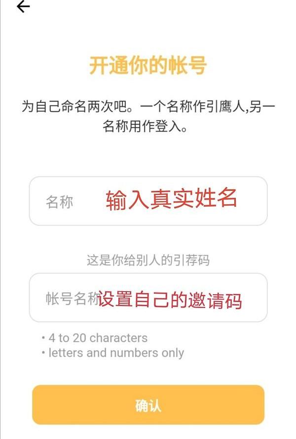 四、输入真实姓名和设置自己邀请码