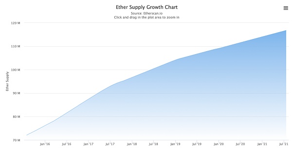 根据ETH的供应增长图表,每日总供给由每日区块奖励、叔块奖励、包含叔块的奖励、Eth2 的staking奖励共同构成。也就是说,使用以太坊网络并在其上交易的人越多,就意味着新的以太坊代币被创建的越多,供应将不断增长。