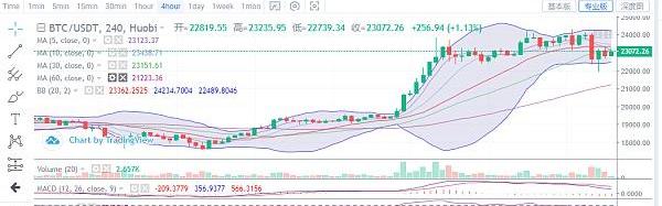 目前整体来看24000上方的卖盘还是有的,就是不清楚是庄家高位出货还是震荡吸筹,所以近期操作要谨慎一点好!12.21BTC行情走势解析日线图整体走势看涨;理由:MACD、EMA、KDJ均呈多头运.