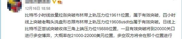 ???笔者最近几天出去散散心了,好多天都没有写了文章,错过了前几天比特币暴涨至2万美金的报道了。不过的,虽然当时笔者在外面游玩的时候,还是及时的在2万美金之前告诉大家要拉盘的,那天傍晚提醒了之后晚上就拉盘了。笔者盘感还是比较好的,多多关注笔者带你们上高速不迷路。