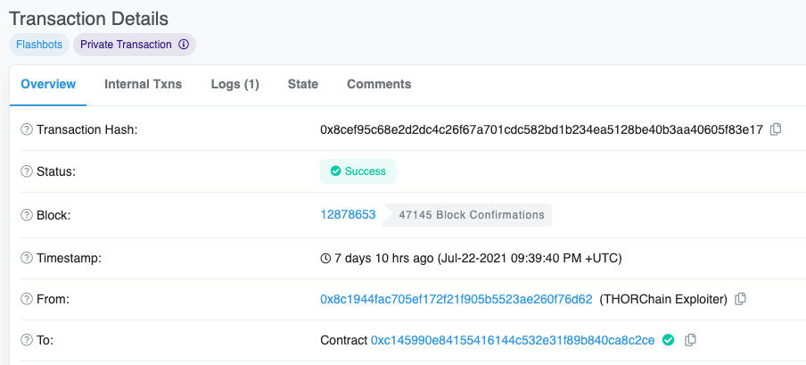 2021 年 7 月 23 日,THORChain 再三遭攻击,损失近 800 万美元。