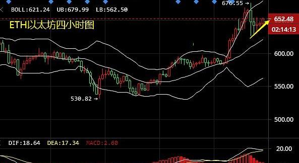 ETH实时操作建议:回落在646附近做多,止损641,目标654附近;
