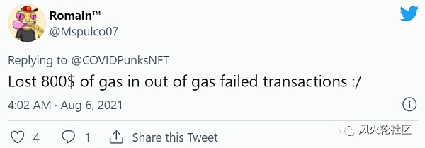 但也有很多人不仅转账失败,还损失了数百美金的gas费用,看来这个风险性还是很大的,目前一个covidpunks在opensea的成交价在0.06-0.12个eth之间。