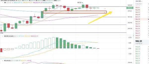 以太坊日线来看在每一次的触底ma10都会有明显的反弹今日开盘之后走出了一段上冲破位590的走势而后开始快速回调期间反弹力度较慢,晚上的时候才开始590冲高回调,从k线图来看虽连阴但下跌的力度都不大,均线大周期和段周期都有明显的多头趋势,576附近给到机会可以做一次多单的布局,上方的区间控制在590能否站稳,破位后期的走势还是会延续到617靠拢。