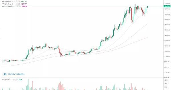 比特币在17000至18000美元间波动了5天后,在12月13日重新站上了19000美元,币圈期待着今年看到2万美元的比特币,但这个历史记录始终没有打破。多空双方在11月形成了一场拉锯战。第四季度的上扬曲线仍被乐观者视为牛市的前兆,不断释放的利好信号包括传统企业以及金融机构接连高调持仓的消息,他们正在成为比特币的巨鲸,灰度信托甚至被散户视作跟随操作的风向标。根据数据统计过去几个月,比特币价格上涨时,散户投资者一直在追高比特币,但也是恐慌时的抛售者。鲸鱼们则是逢低买入,这就相当于散户将廉价的筹码交给了鲸鱼。