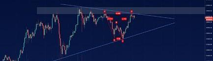 行情分析:昨日多次冲高未破,日内有回踩需求。四小时有潜在的三角结构形成,日内如不直接上破图上的灰色供给区,后续继续保持宽幅震荡完成三角结构的概率偏大,同时当前完成的是四小时谐波1.0鲨鱼形态,存在回踩或反转概率,激进操作可根据小级别是否走出见顶形态尝试短空操作,由于是上涨趋势,动能也处于多头主导,若回落18730,18500两个位置附近,留意是否走出K反信号则可以尝试多单操作。无论多空,在没有效上下破位的情况下,建议短线为主。