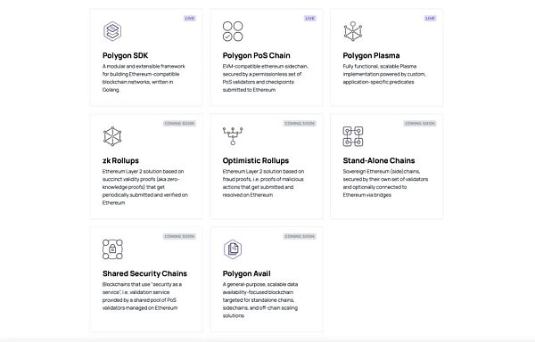 至今没有一个像 Polygon 一样推出数量如此多的扩容方案。