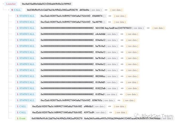 BlockSec团队首先从以太坊的攻击交易入手,这源于我们已经有一个比较好的交易trace分析系统(https://tx.blocksecteam.com),能用可视化的方式将函数调用过程恢复。