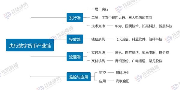 总的来看发行端,需有相应的企业技术支持,以配合银行核心系统改造、银行机具改造、数字货币芯片制造等环节。
