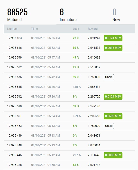 2Miner.com区块产出及MEV情况,来源:2Miners.com