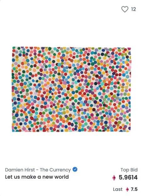 11/12 但赫斯特的 NFT/ 绘画混合体无疑是有价值的,直接向人们提出一个振聋发聩的问题:我们为什么认为艺术有价值?