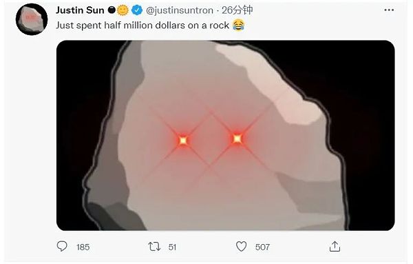 8月22日,孙宇晨在推特表示,花了50万美元买了一块“JPG石头”。