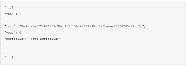 再来看看这个输出被花费时的情形。传统交易的输出在花费时的数据结构如下: